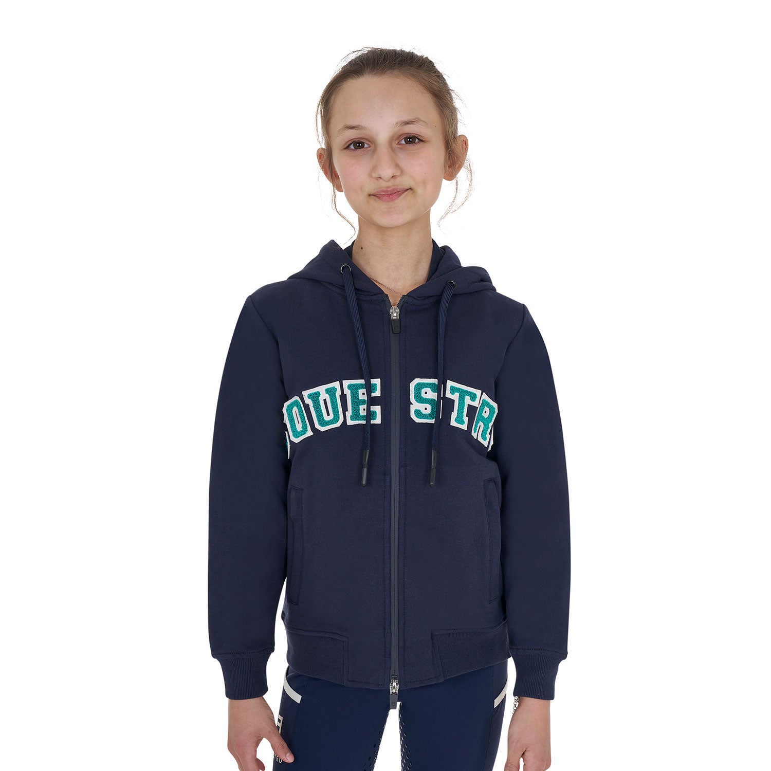 La scritta Equestro in spugna posta sul petto aggiunge un elemento di tendenza, donando un tocco di personalità unica al tuo look.